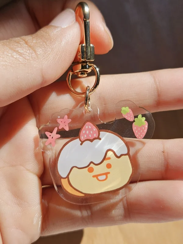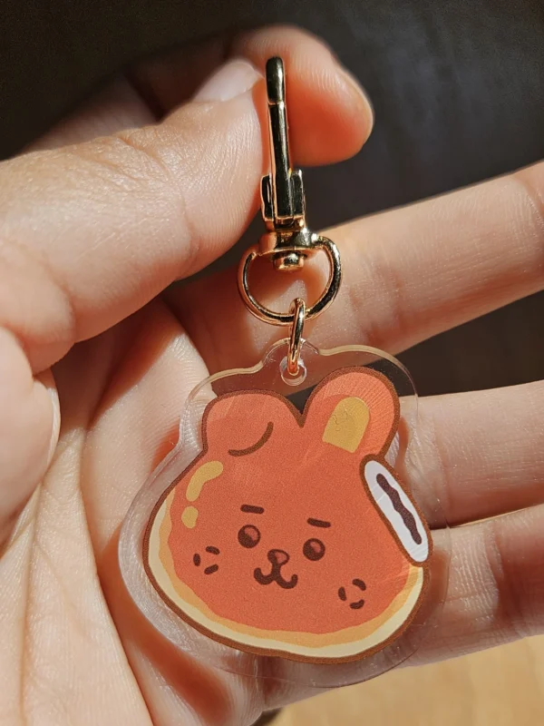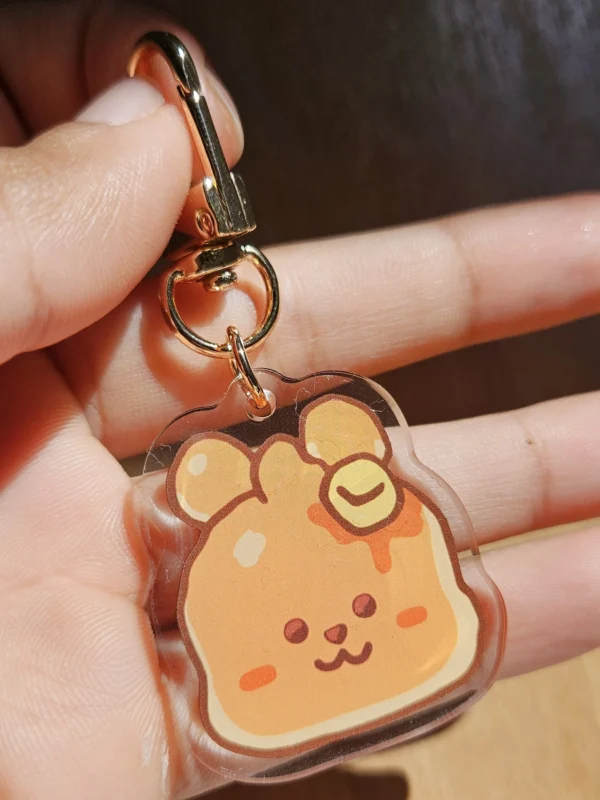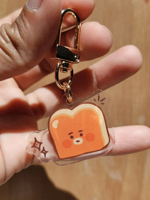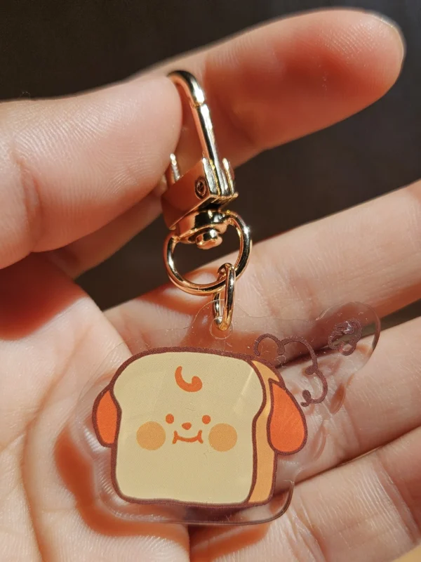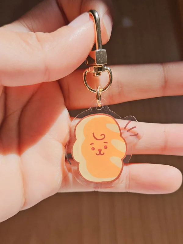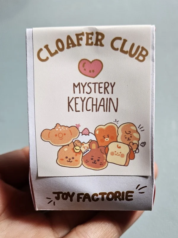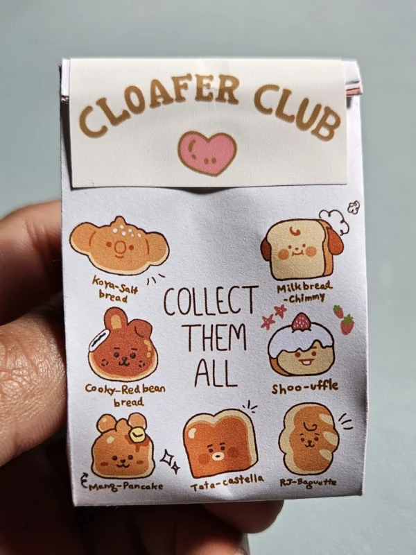 This handmade mystery bread bag contains a 1 of the 7 Cloafer Club characters (double sided acrylic keychain) with a nougat candy inside.