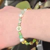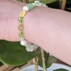 This bracelet features an assortment of green, yellow and white beads along with 14k gold plated spacer beads. It also contains freshwater Pearls, green shell hearts and an assortment of other beads. ✨